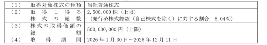 2.上記取締役会決議に基づき取得した自己株式の累計(2026 年2月10 日現在)