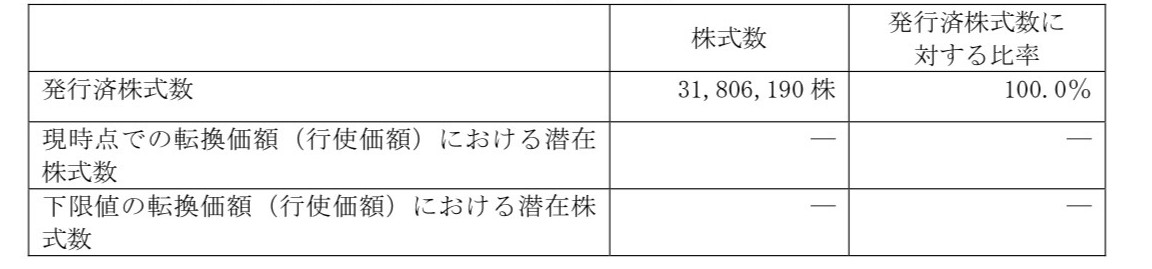 (2)現時点における発行済株式数及び潜在株式数の状況