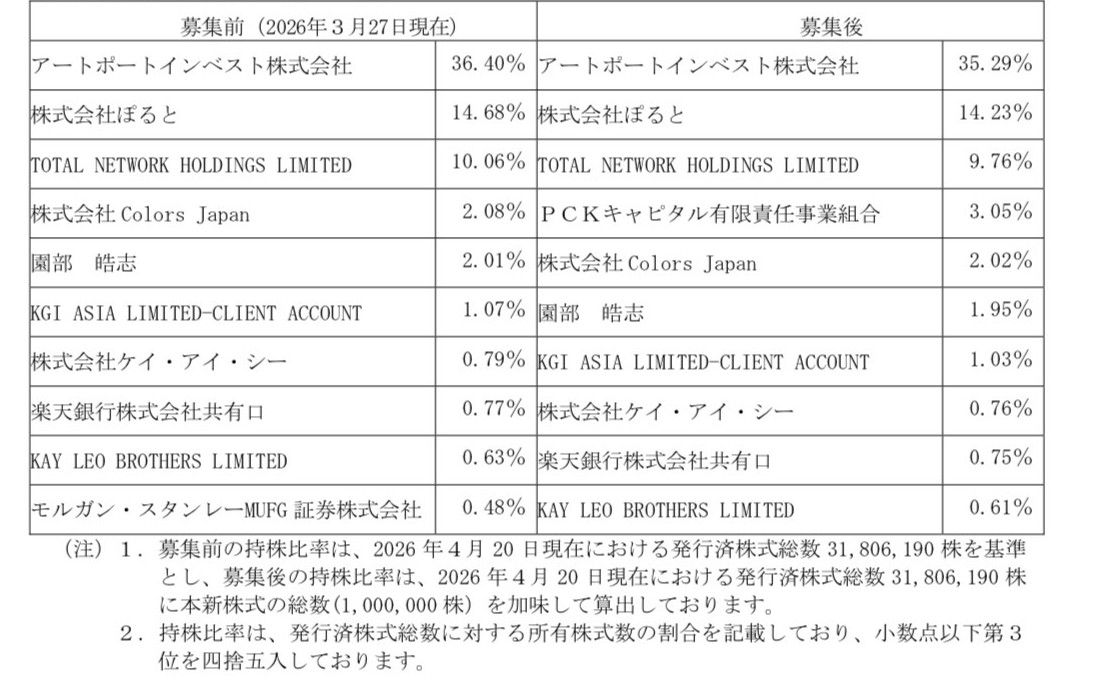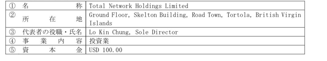 今回の本新株式の発行による株式希薄化に伴って、TotalNetwork Holdings Limitedが当社の主要株主に該当しなくなることとなりました。
