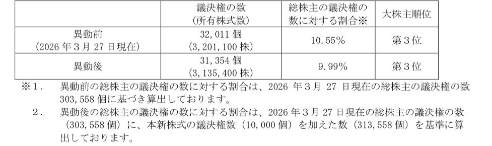 また、本第三者割当に伴い、主要株主の異動が見込まれますので、併せてお知らせいたします。